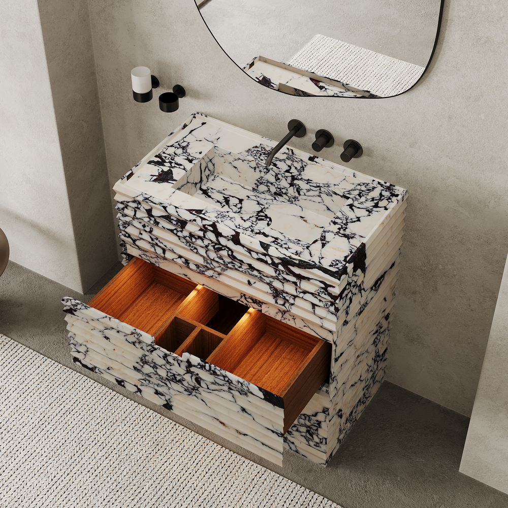 Njord - Ribbed Marble Bathroom Vanity - Calacatta Viola - Large