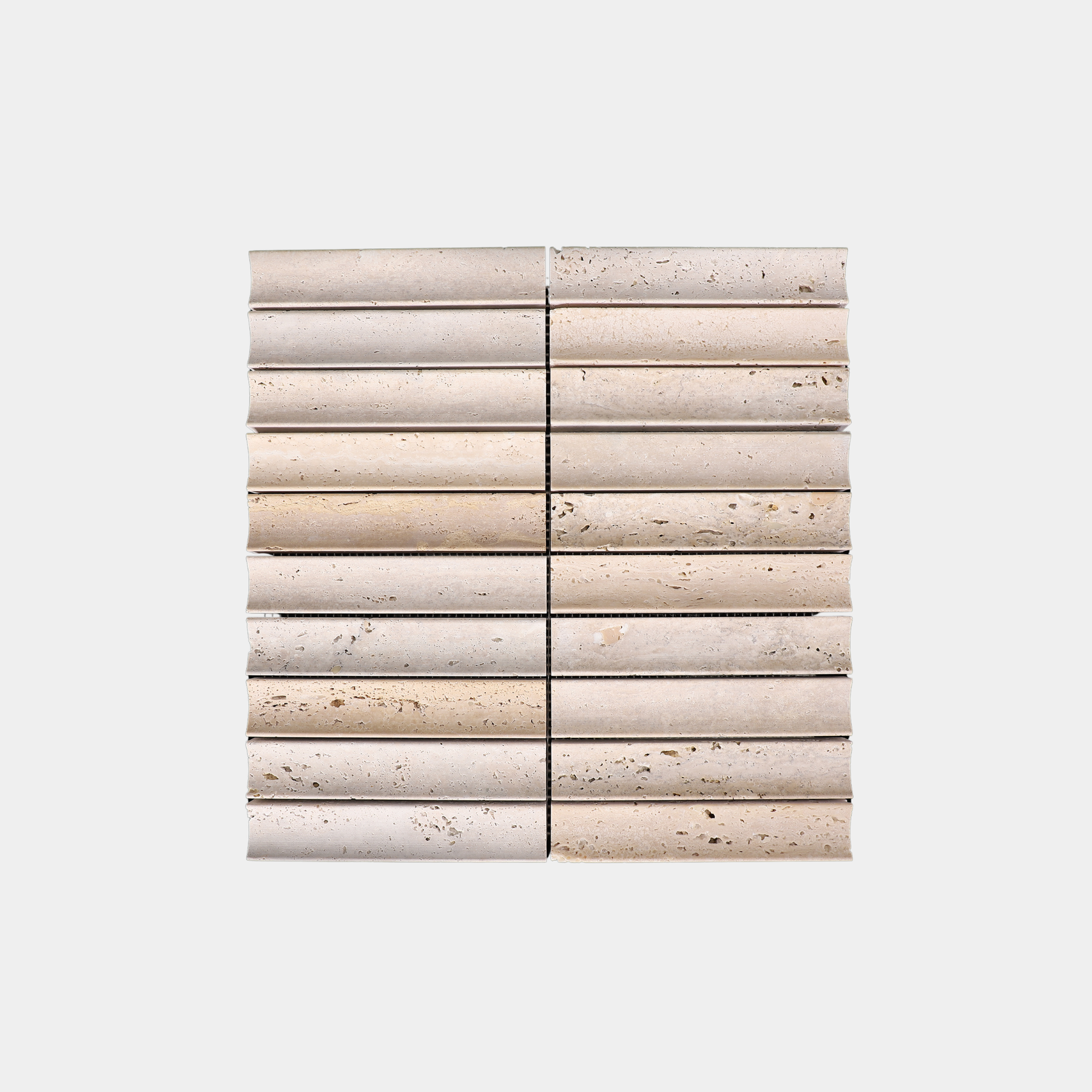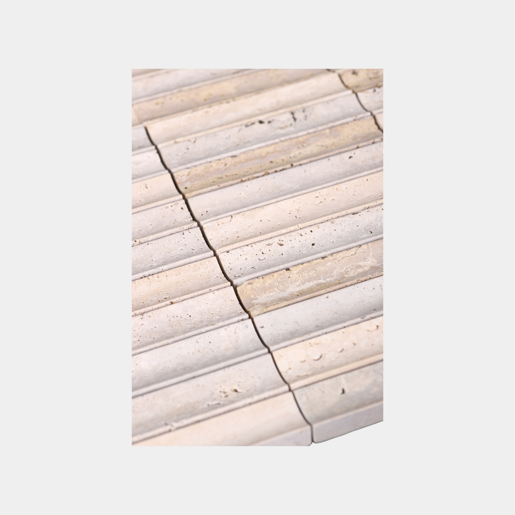 Inverted flute tiles in beige travertine combine timeless elegance with practical durability. The distinctive fluted surface creates visual depth and texture, adding architectural interest to any space while maintaining a sophisticated, neutral aesthetic. Travertine's natural variations ensure each tile is unique, making it ideal for feature walls, flooring, or accent applications. The beige tone complements both contemporary and traditional interiors, offering versatility in design schemes. These tiles are suitable for interior applications where their natural porosity and classic appeal enhance residential or commercial environments.