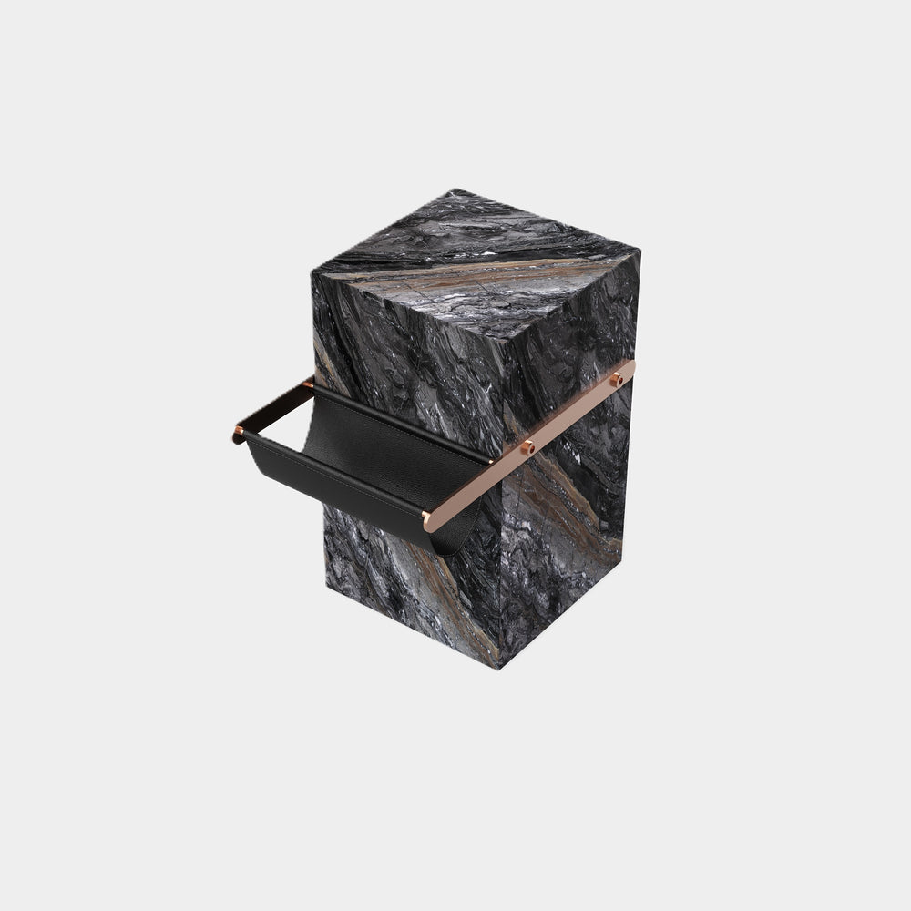 Aarhaus - Marble Side-Table With Storage Pouch - Grey Galaxy